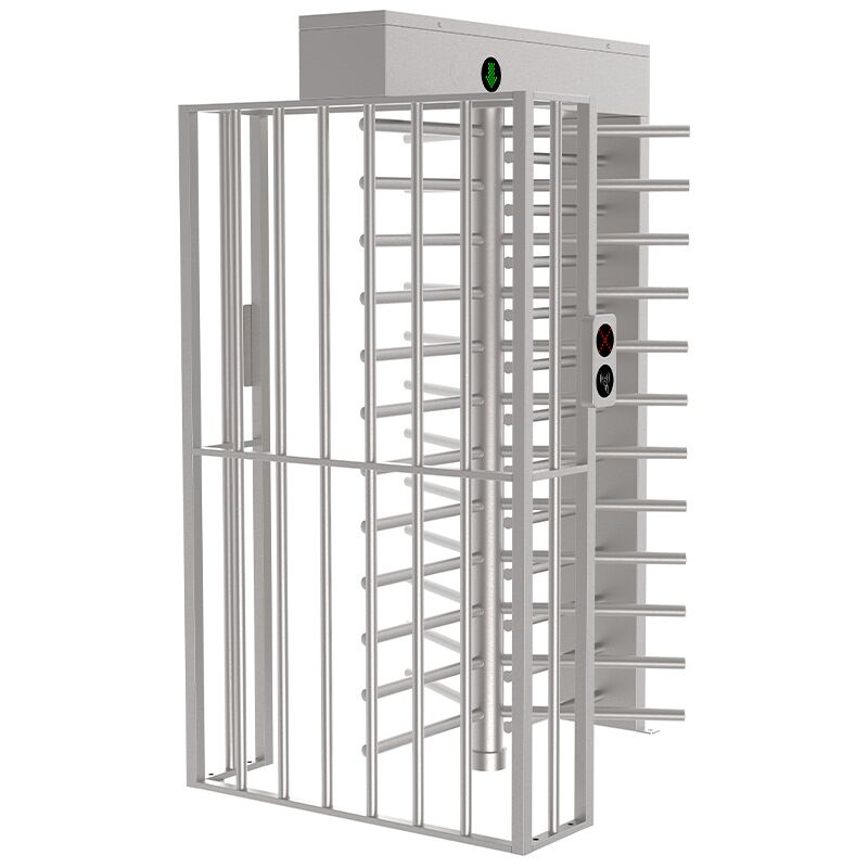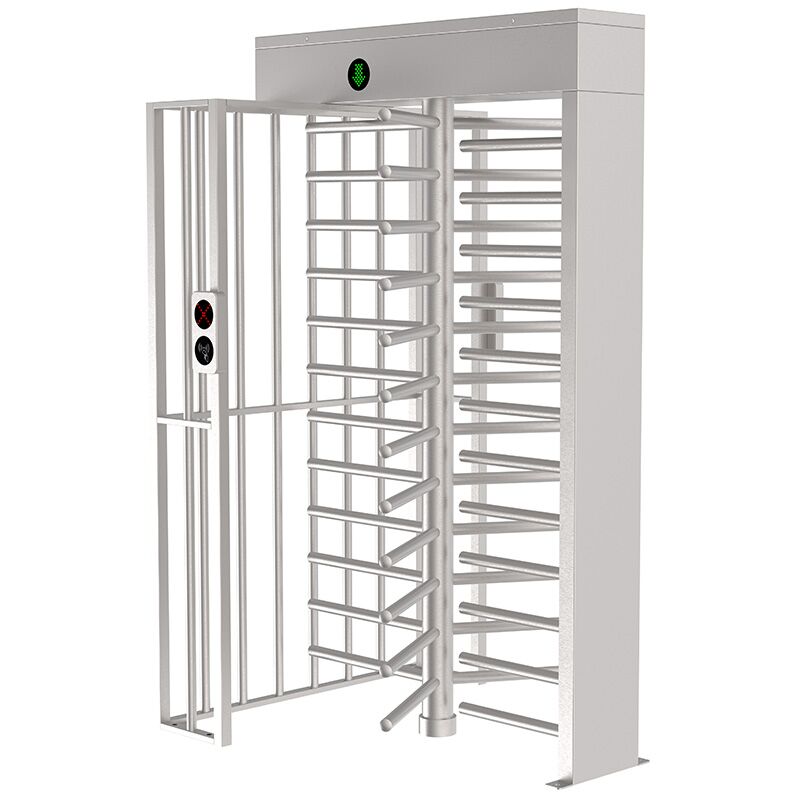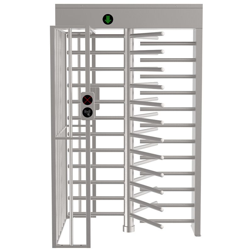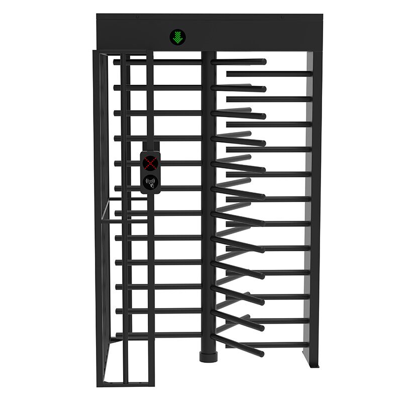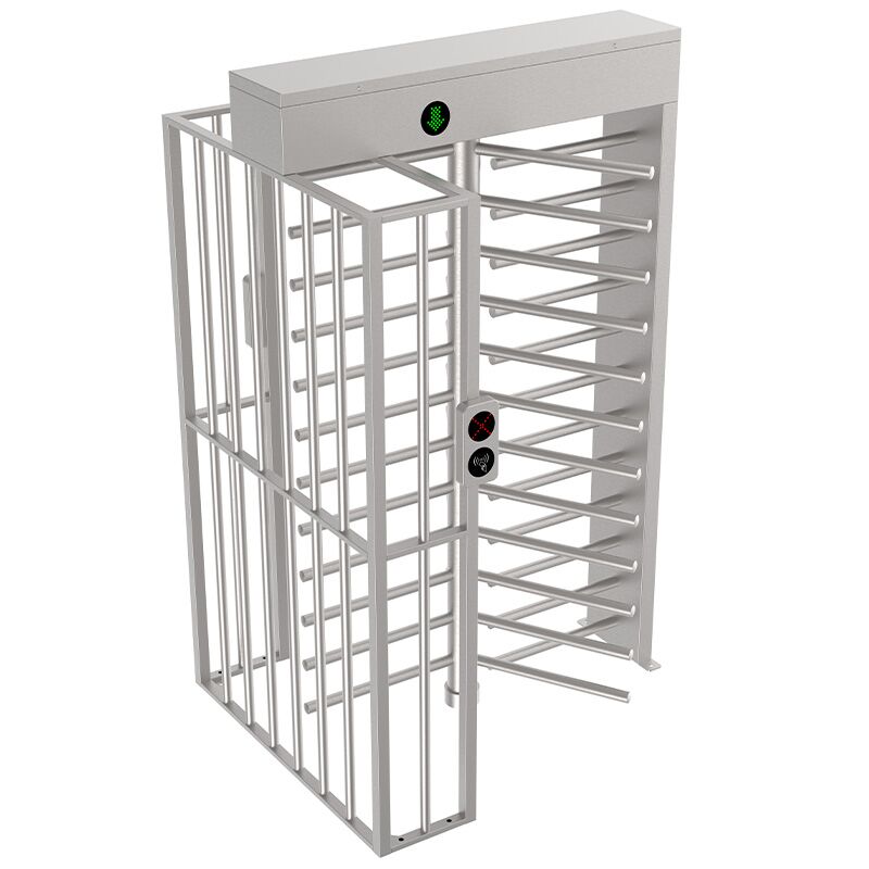 Full height turnstile gate is integrated with a mechanism, electric and micro-controller, and various kinds of identification technologies, compatible with IC, ID, bar code, fingerprint reader, and so on to provide intelligent control and management to flow control.