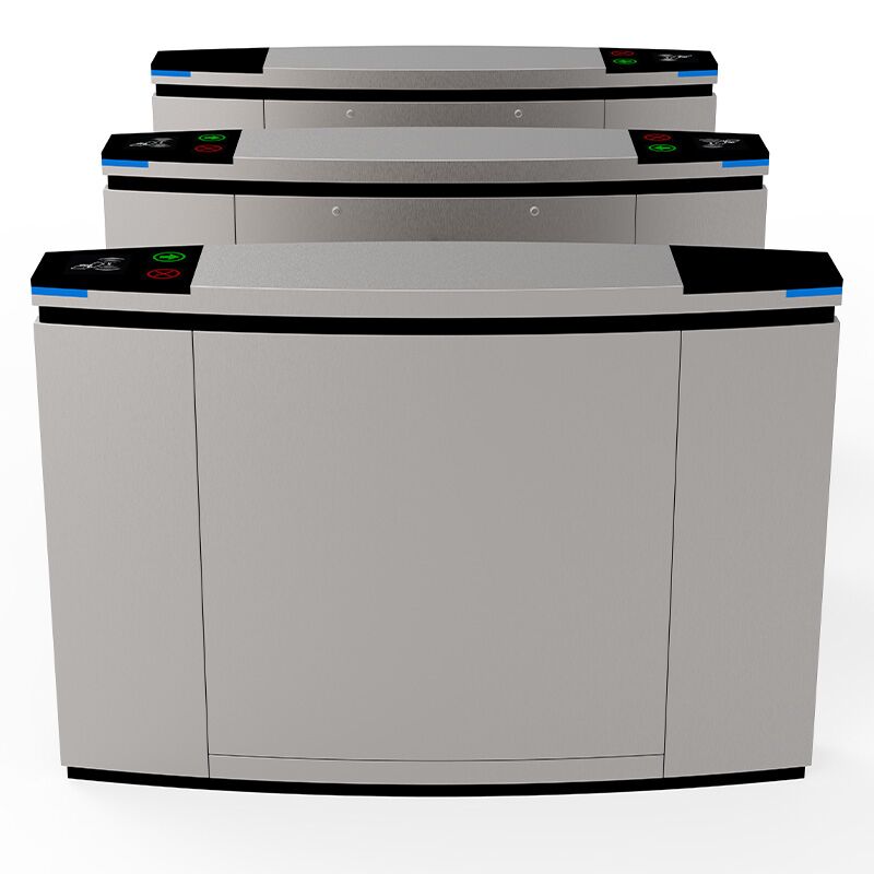 In access control mode, upon receipt of a valid card signal from an access control system, the barrier flap of the turnstile quickly retract into the cabinet, and the integrated IR allows a single user to pass through the turnstile in the requested direction.