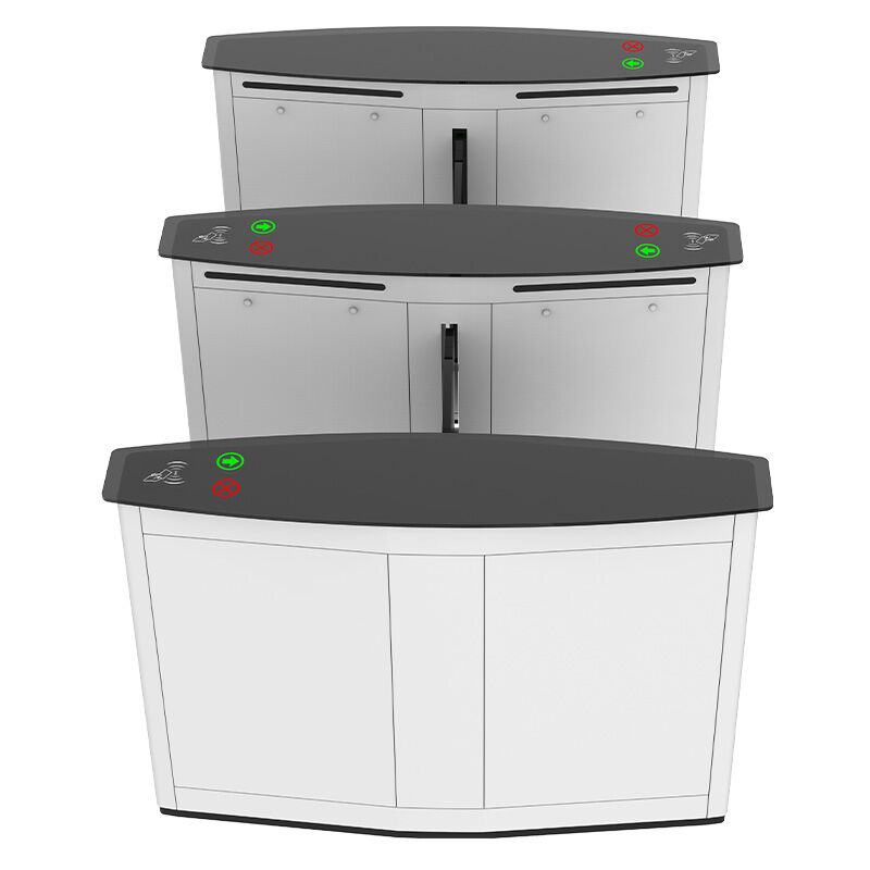 Kapaklı turnike kapısı MT244, bir binanın her alanına yalnızca yetkili kullanıcıların erişmesine izin verilmesini sağlamak için güvenilir ve verimli bir yöntem sunar. Bir yön göstergesi, yaya erişiminin mevcut durumuna ve yaya doğru ve sorunsuz geçişine rehberlik ettiğini gösterdi. Kanatlı bariyer kapısı, sıcaklık kontrol cihazları, parmak izleri, QR kod okuyucular, RFID sistemleri vb. ile yüz tanıma gibi her erişim kontrol sistemi için yüksek düzeyde entegre edilmiştir.