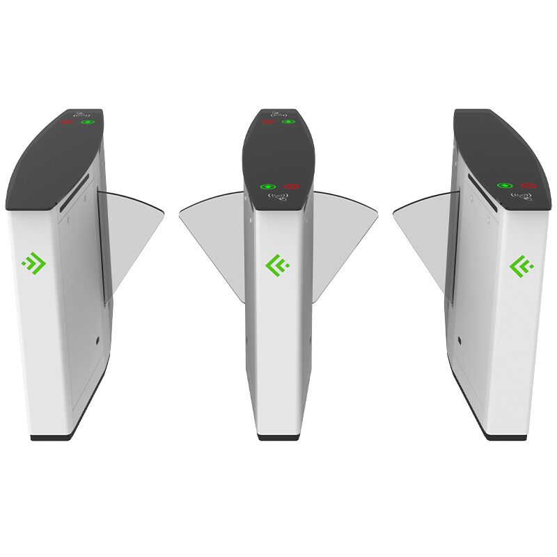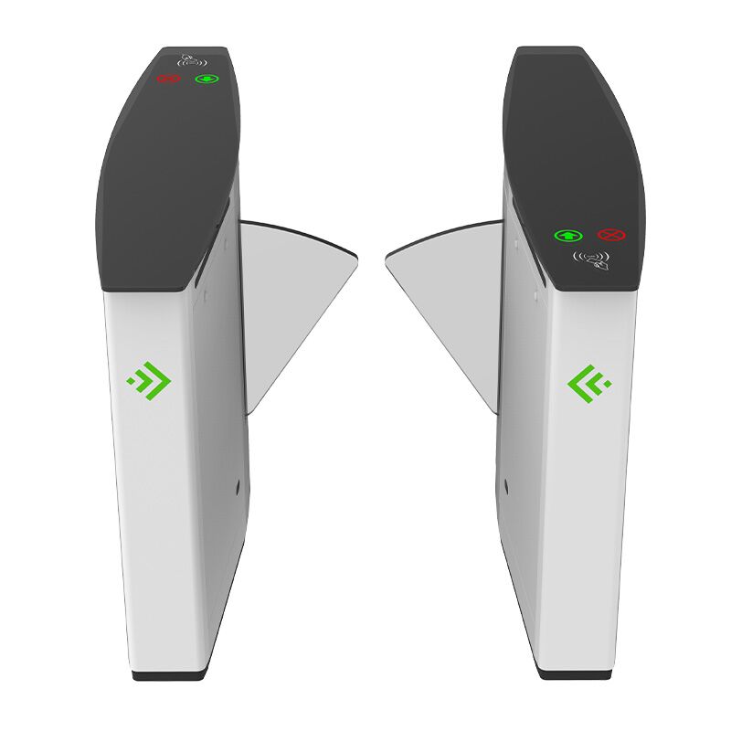 - Flap bariyerli kapı turnikeleri, kısıtlı alana giren veya çıkan kişileri kontrol etmek için inşa edilmiştir. Genellikle çift yönlü yaya trafiğinin yoğun olduğu yerlerde kullanılır.